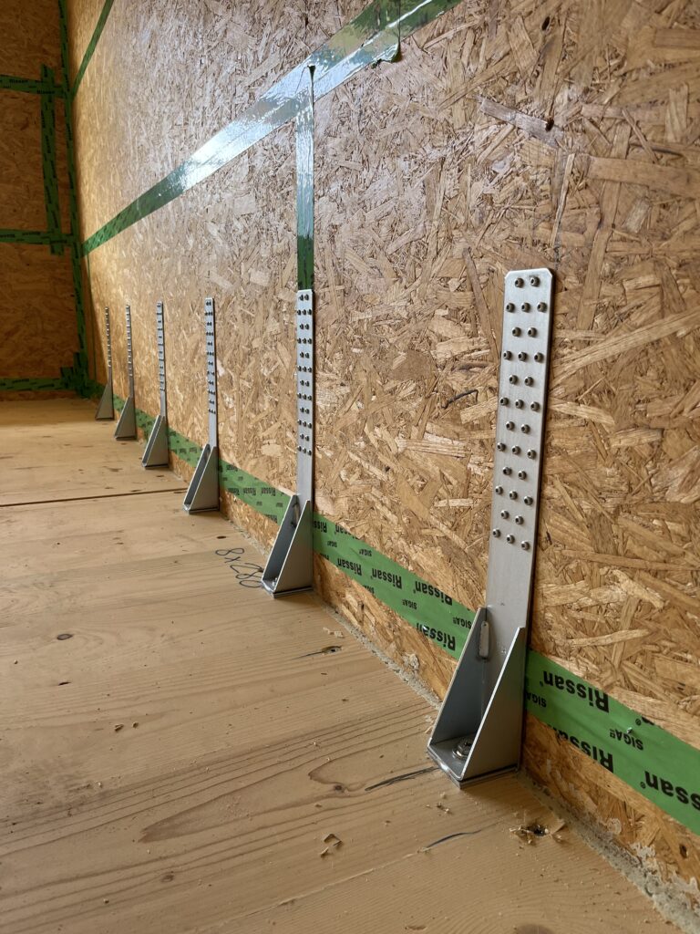 Der Neubau steht auf einem massiven Sockelgeschoss. Geerdet und funktional belegt, übernimmt er die Basis. Dort wollte er seine Arbeit im Winter fortführen. Aus diesem Konzeptgedanken ergab sich aber später die Idee für eine kleine Einliegerwohnung im Eingangsgeschoß, die zwischenzeitlich vermietet und später wieder ins Hausgefüge integriert werden kann. Das Wohnhaus darüber besteht aus einer zweigeschossigen Holzriegelkonstruktion mit Satteldach, welches sich der Sonne entgegendreht. Der First wurde bewusst quer zum Hang gestellt. Die gesamte südwestliche Dachfläche wurde mit PV belegt und übernimmt die autarke Versorgung des Gebäudes. Das Gebäude sollte hohen ökologischen Standards entsprechen.