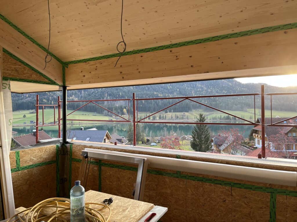Das Hanggrundstück oberhalb der hiesigen Bäckerei der kleinen Ortschaft Gatschach am Weißensee war dann wohl die perfekte Wahl für ihn und seine Familie. Der Hang dreht sich nach Südwesten der Sonne entgegen. Das Haus soll der Sonne folgen. Das war ihm von Anfang an klar.