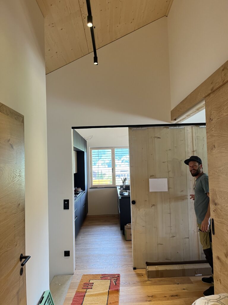 Raumhohe Türen, bündige Übergänge, Oberflächen in Sichtbetonoptik und hohe Ansprüche an die architektonische Gestaltung waren dem Senner wichtig und spiegeln sich im Ergebnis wieder.